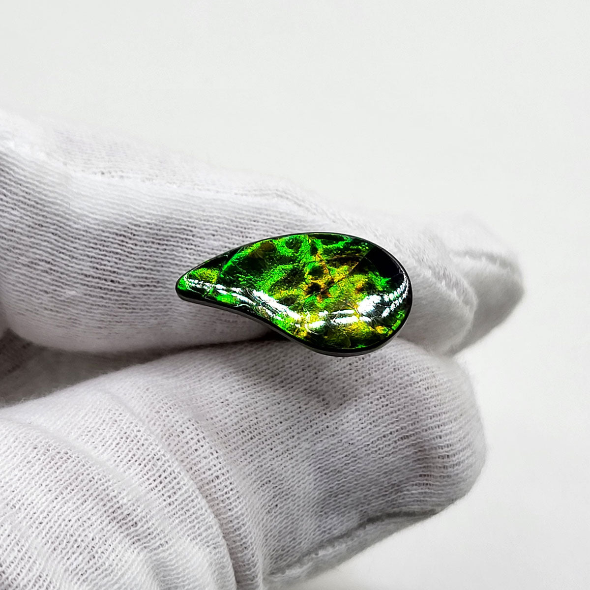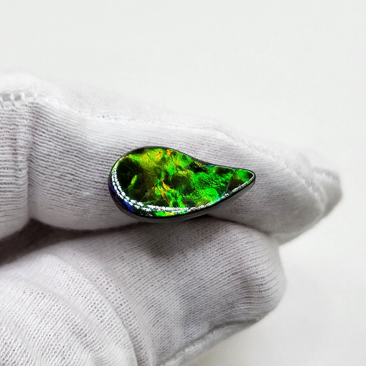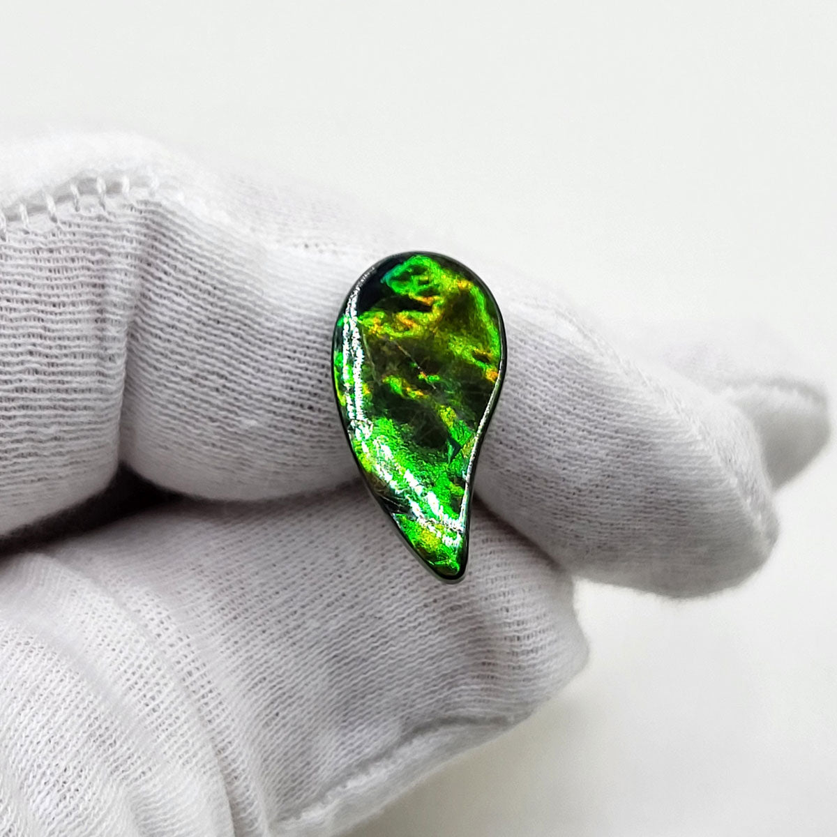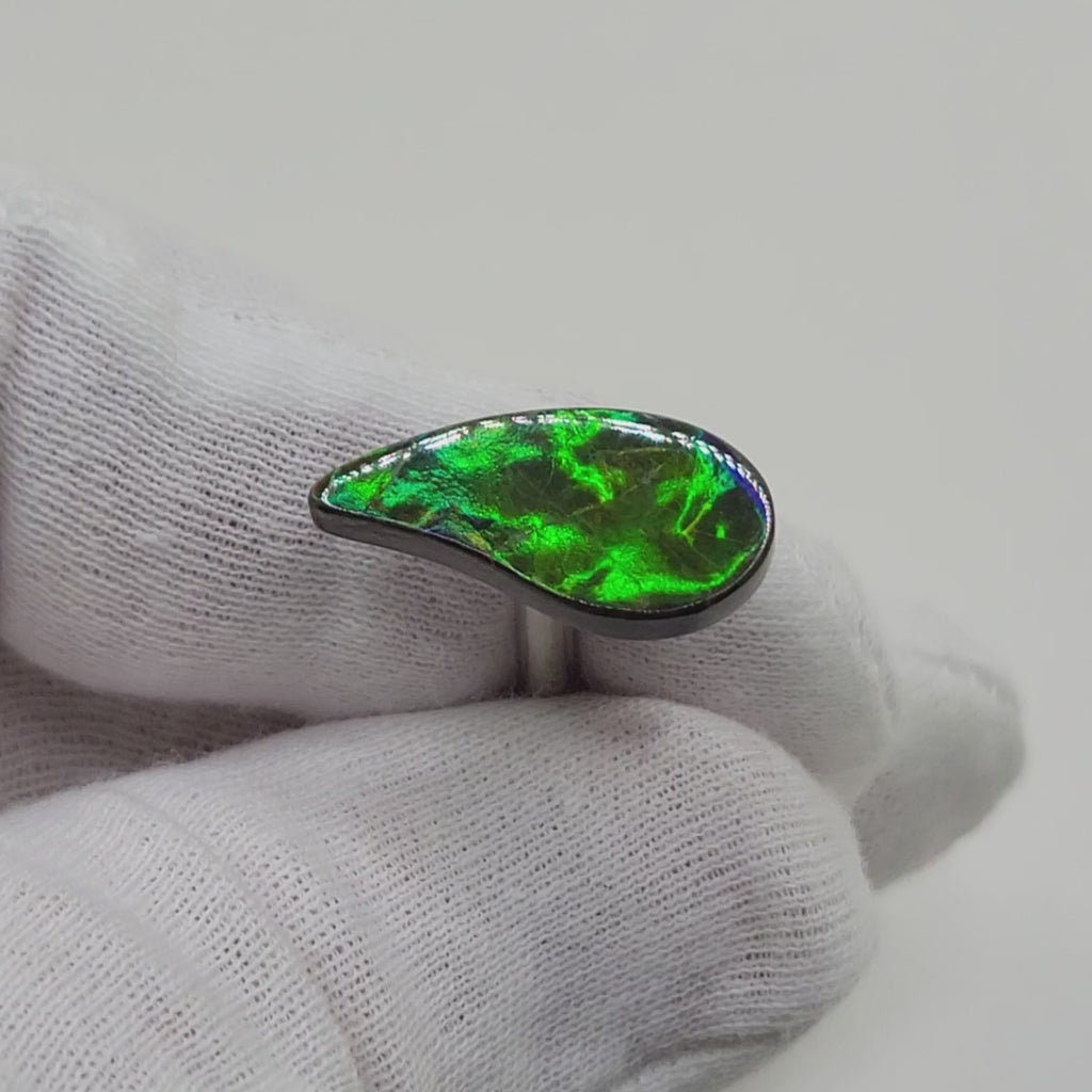 Swept Pear shaped Authentic Alberta Ammolite Freeform Gemstone as collector piece or as designer piece for customized jewellery.