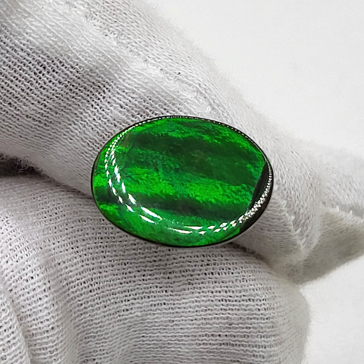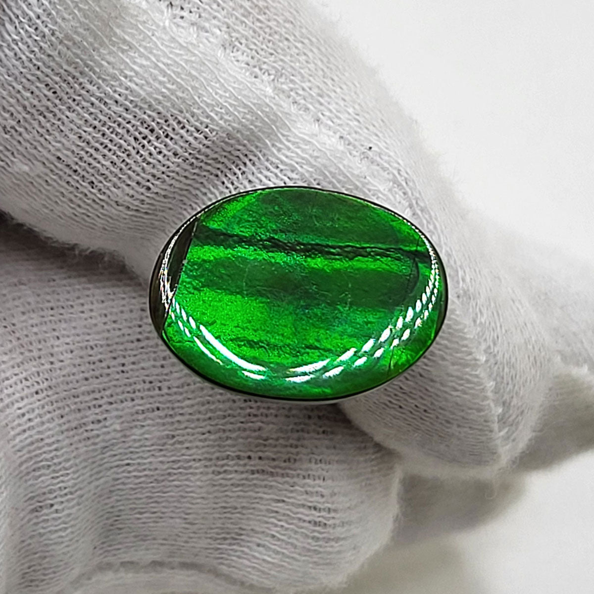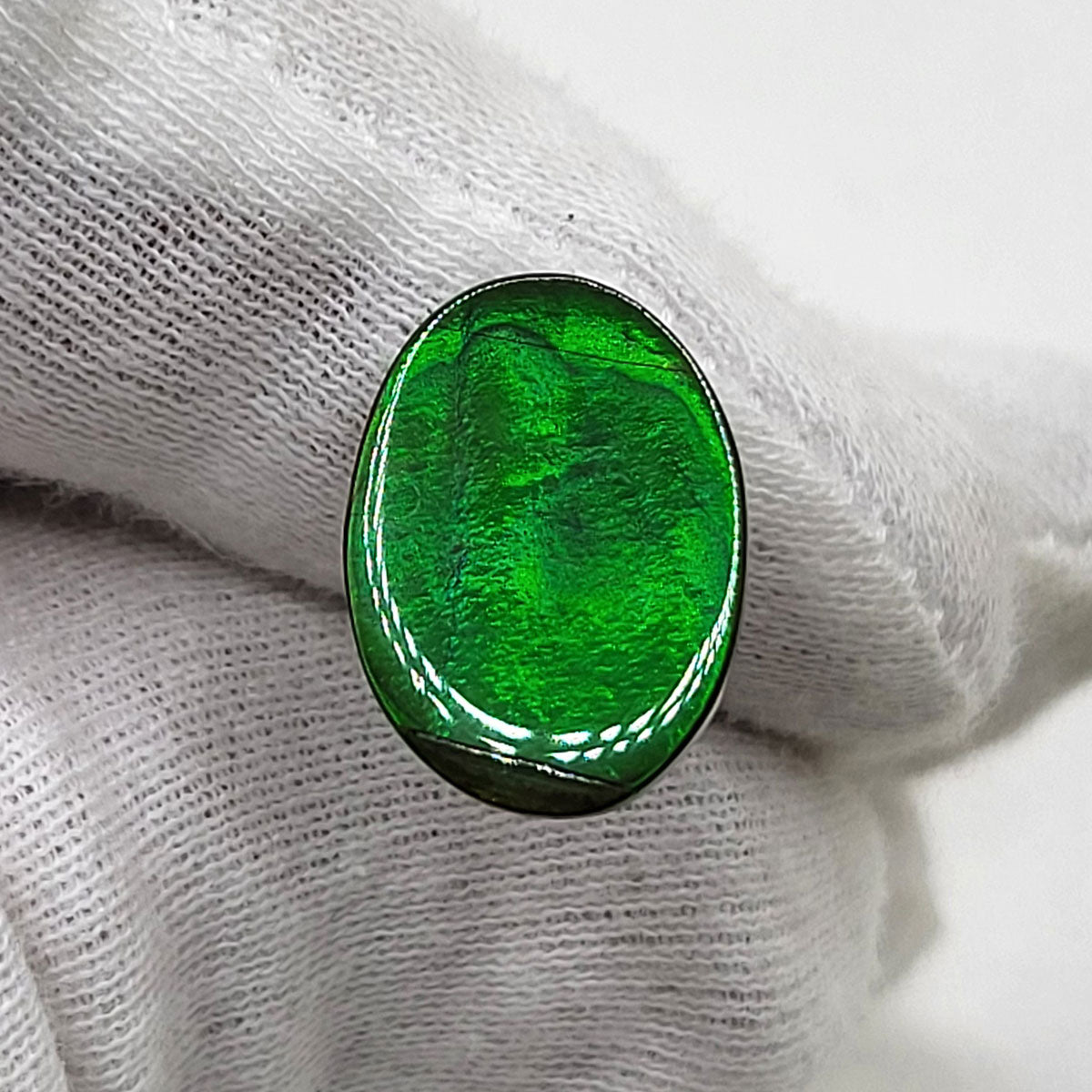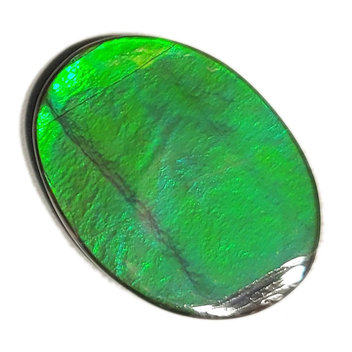 Oval shaped Authentic Alberta Ammolite Freeform Gemstone as collector piece or as designer piece for customized jewellery.