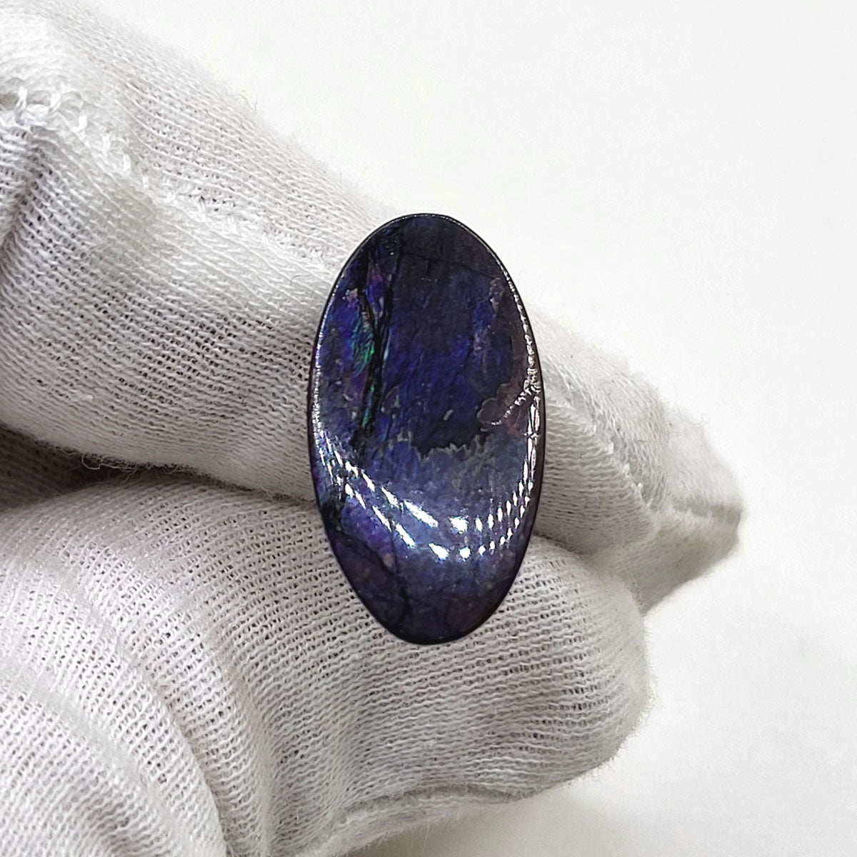 Oval shaped Authentic Alberta Ammolite Freeform Gemstone as collector piece or as designer piece for customized jewellery.
