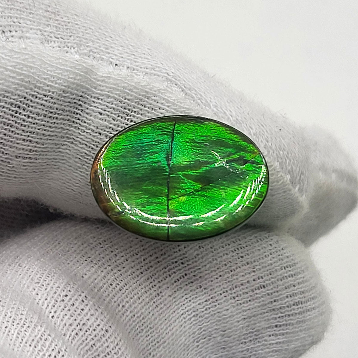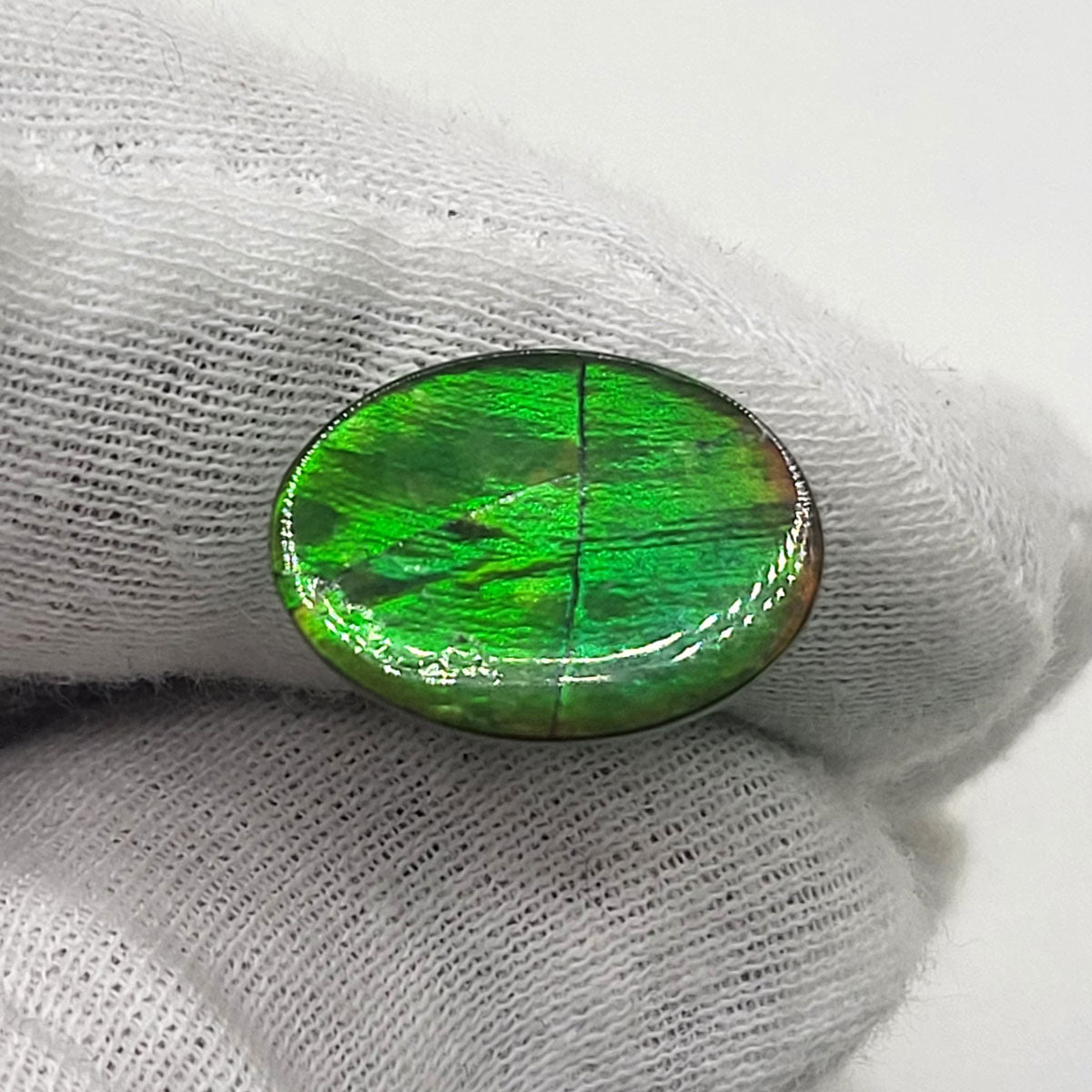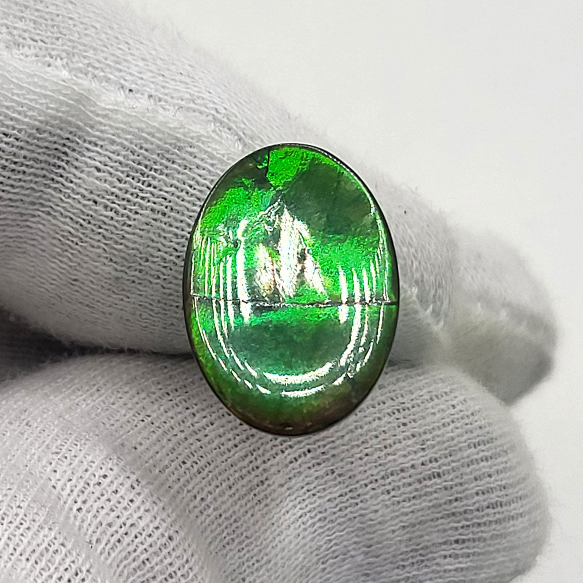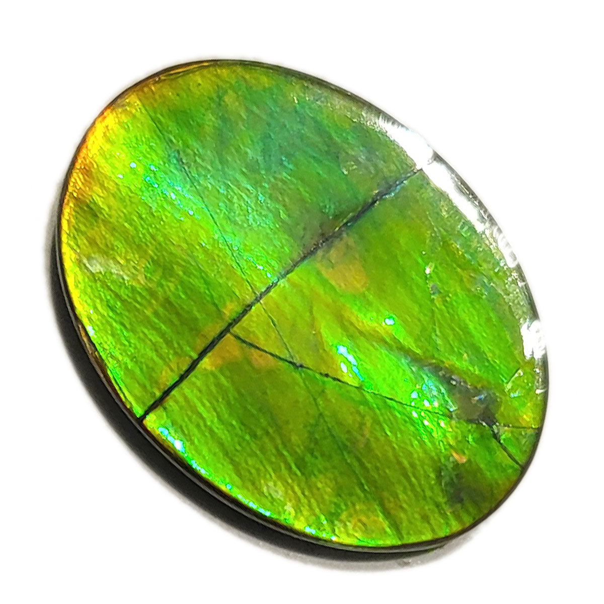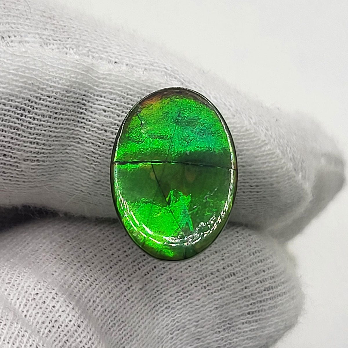 Oval shaped Authentic Alberta Ammolite Freeform Gemstone as collector piece or as designer piece for customized jewellery.