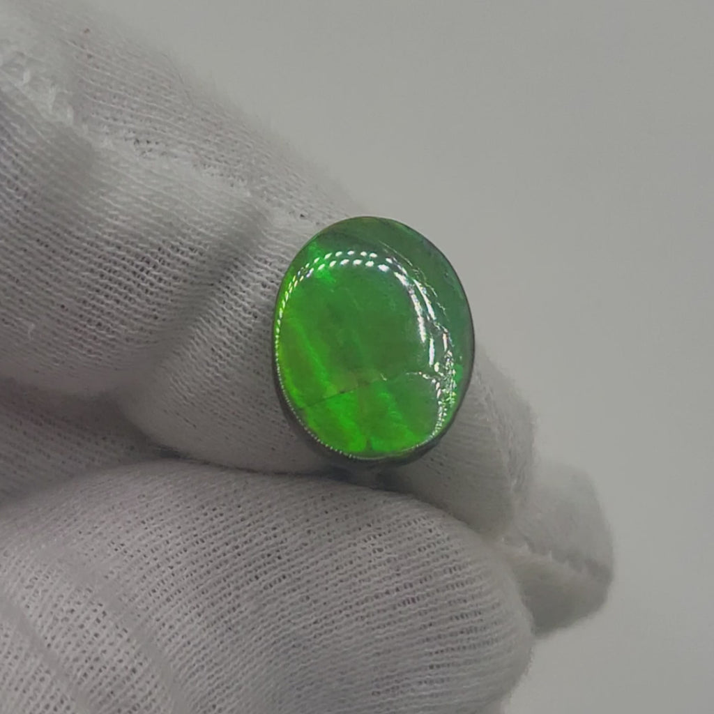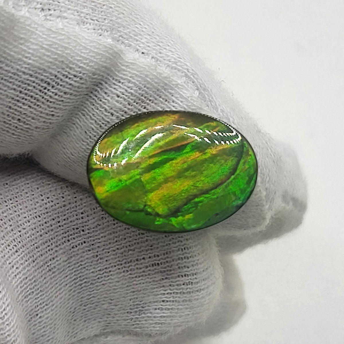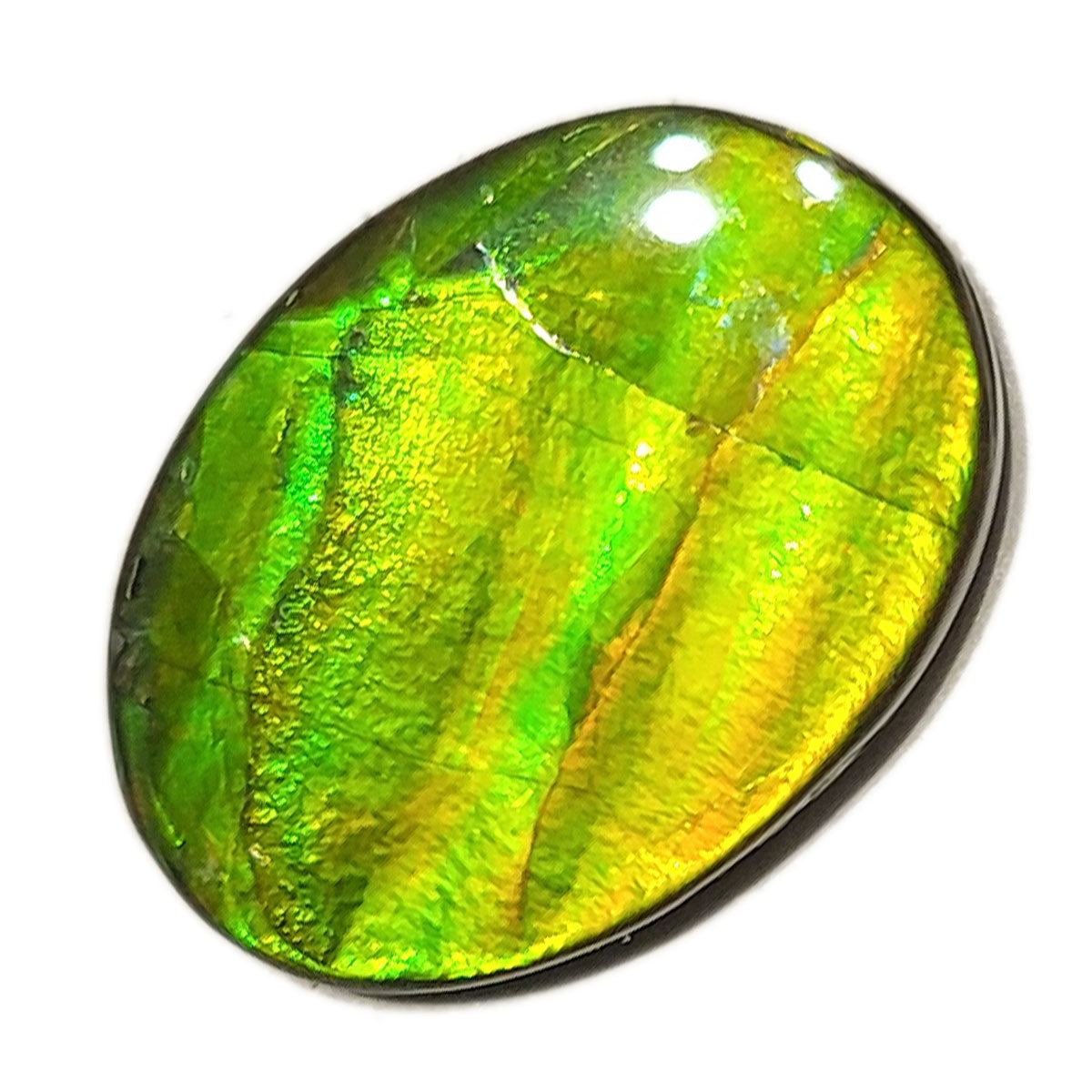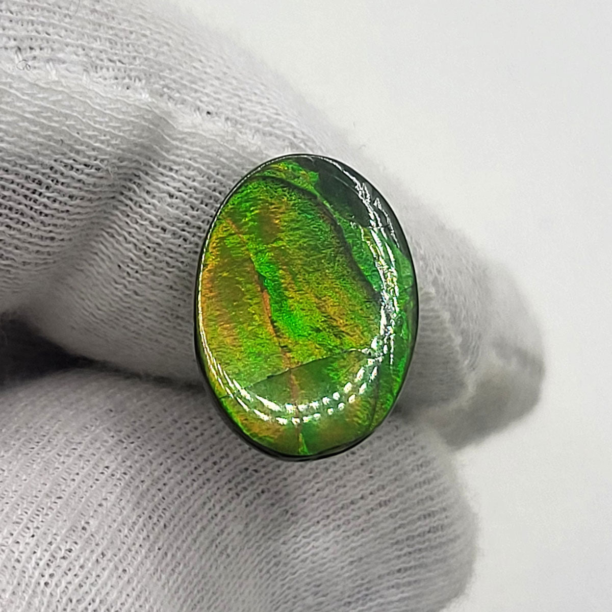Oval shaped Authentic Alberta Ammolite Freeform Gemstone as collector piece or as designer piece for customized jewellery.