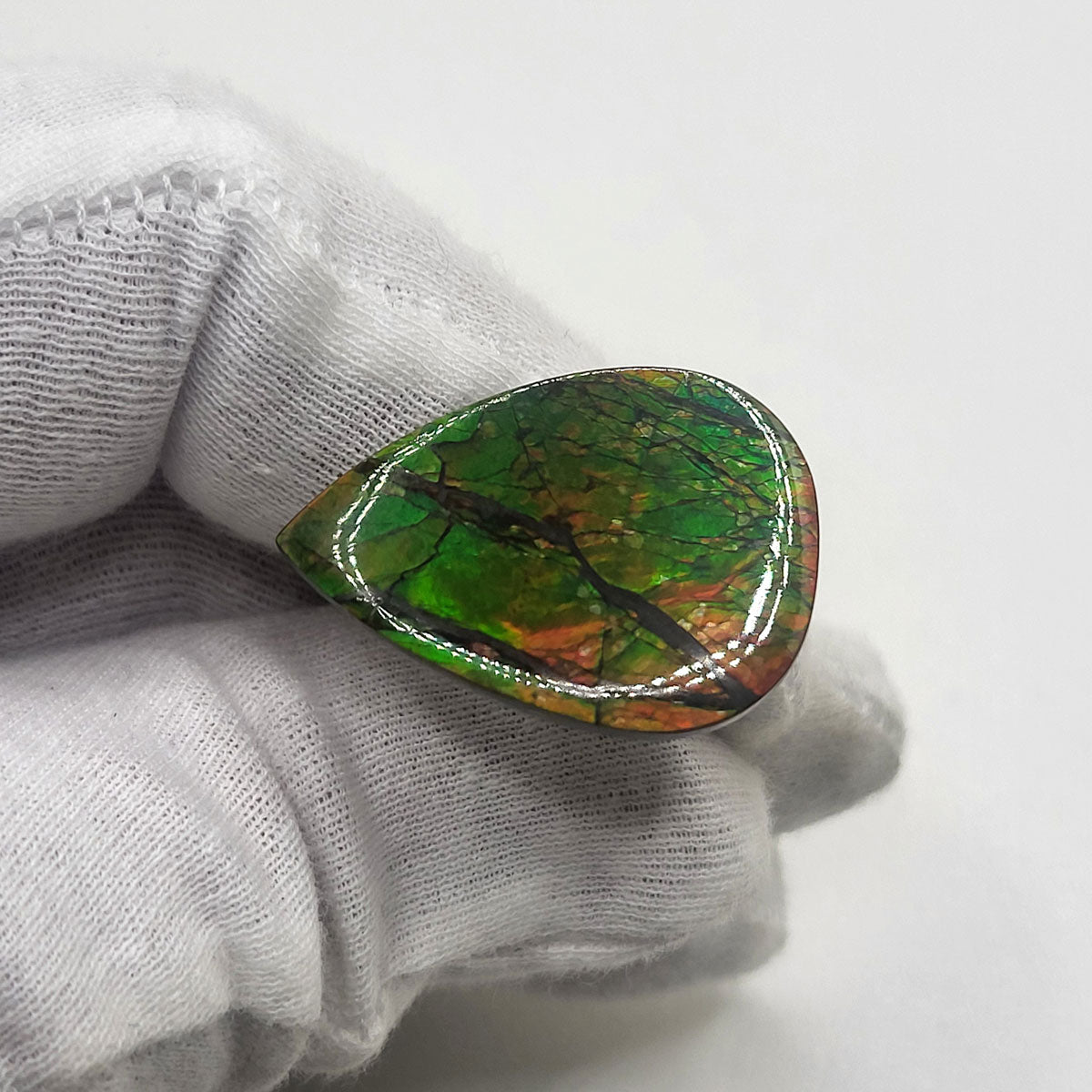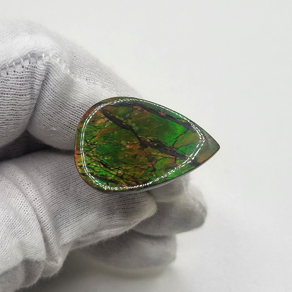 Pear shaped Authentic Alberta Ammolite Freeform Gemstone as collector piece or as designer piece for customized jewellery.