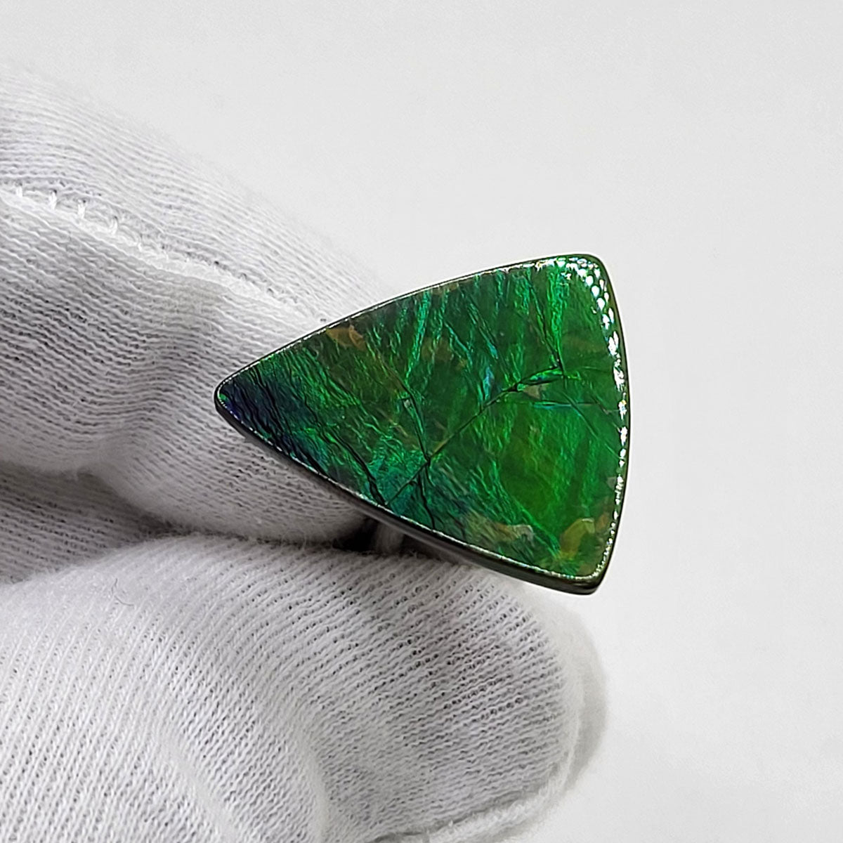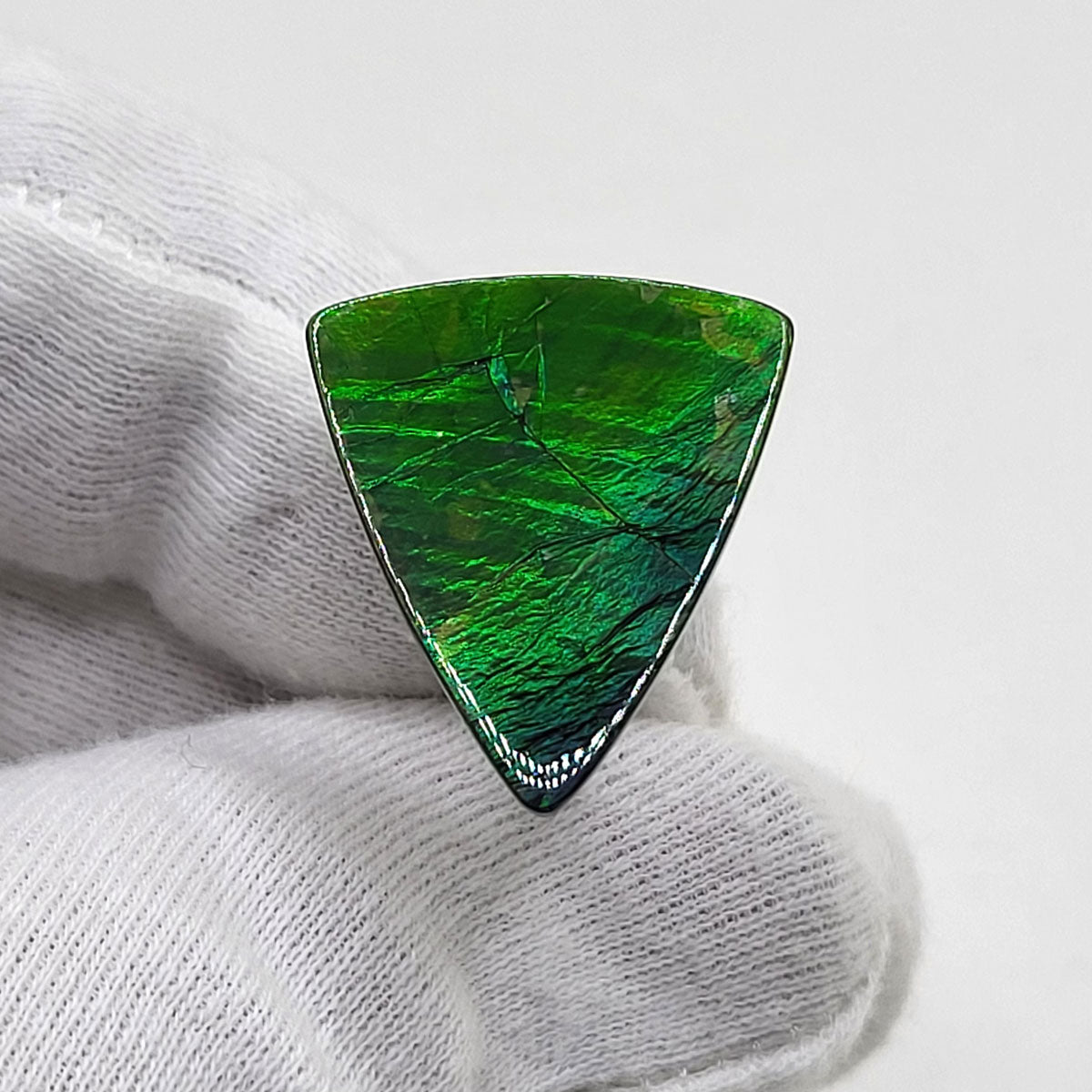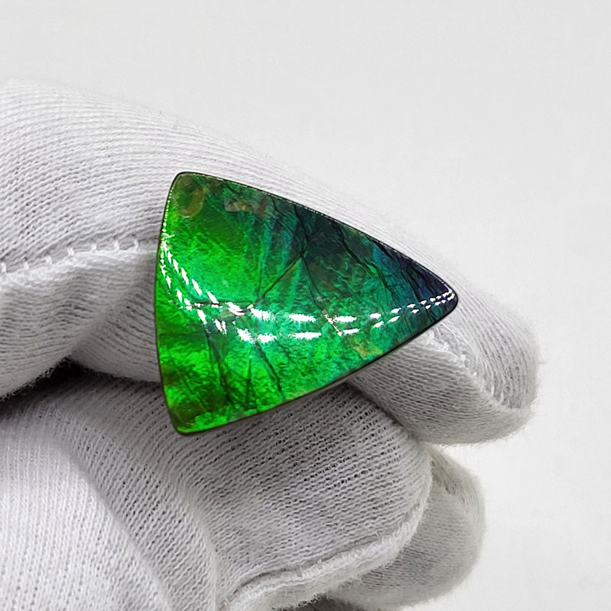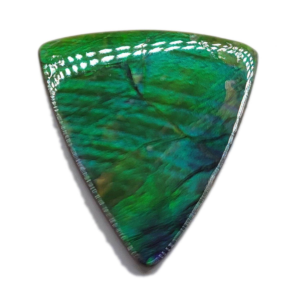 Triangle shaped Authentic Alberta Ammolite Freeform Gemstone as collector piece or as designer piece for customized jewellery.