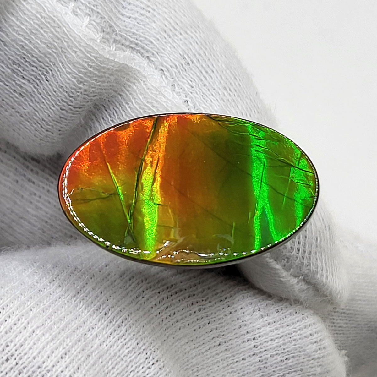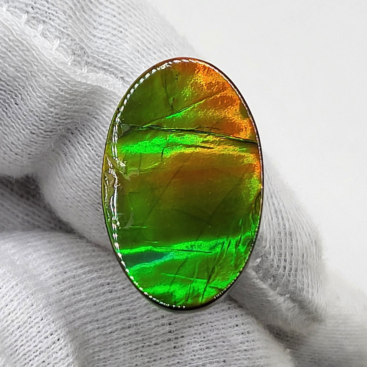 Oval shaped Authentic Alberta Ammolite Freeform Gemstone as collector piece or as designer piece for customized jewellery.