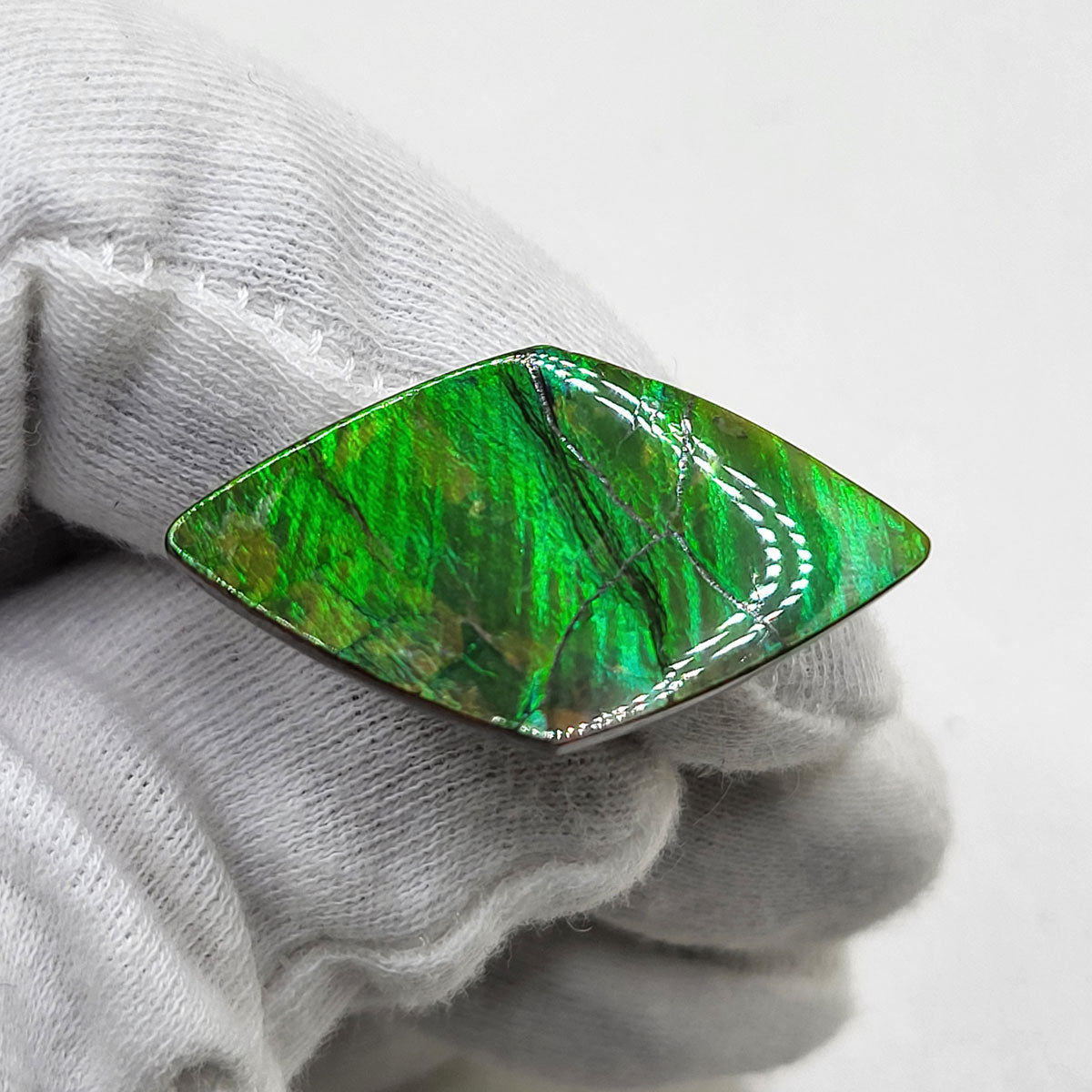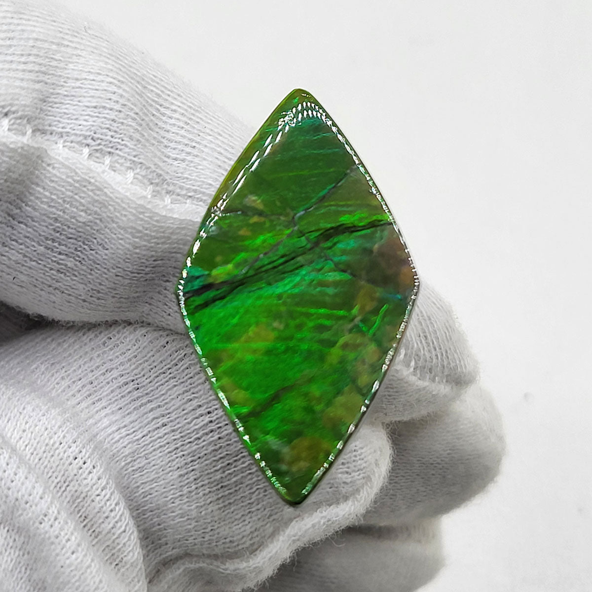 Shield shaped Authentic Alberta Ammolite Freeform Gemstone as collector piece or as designer piece for customized jewellery.