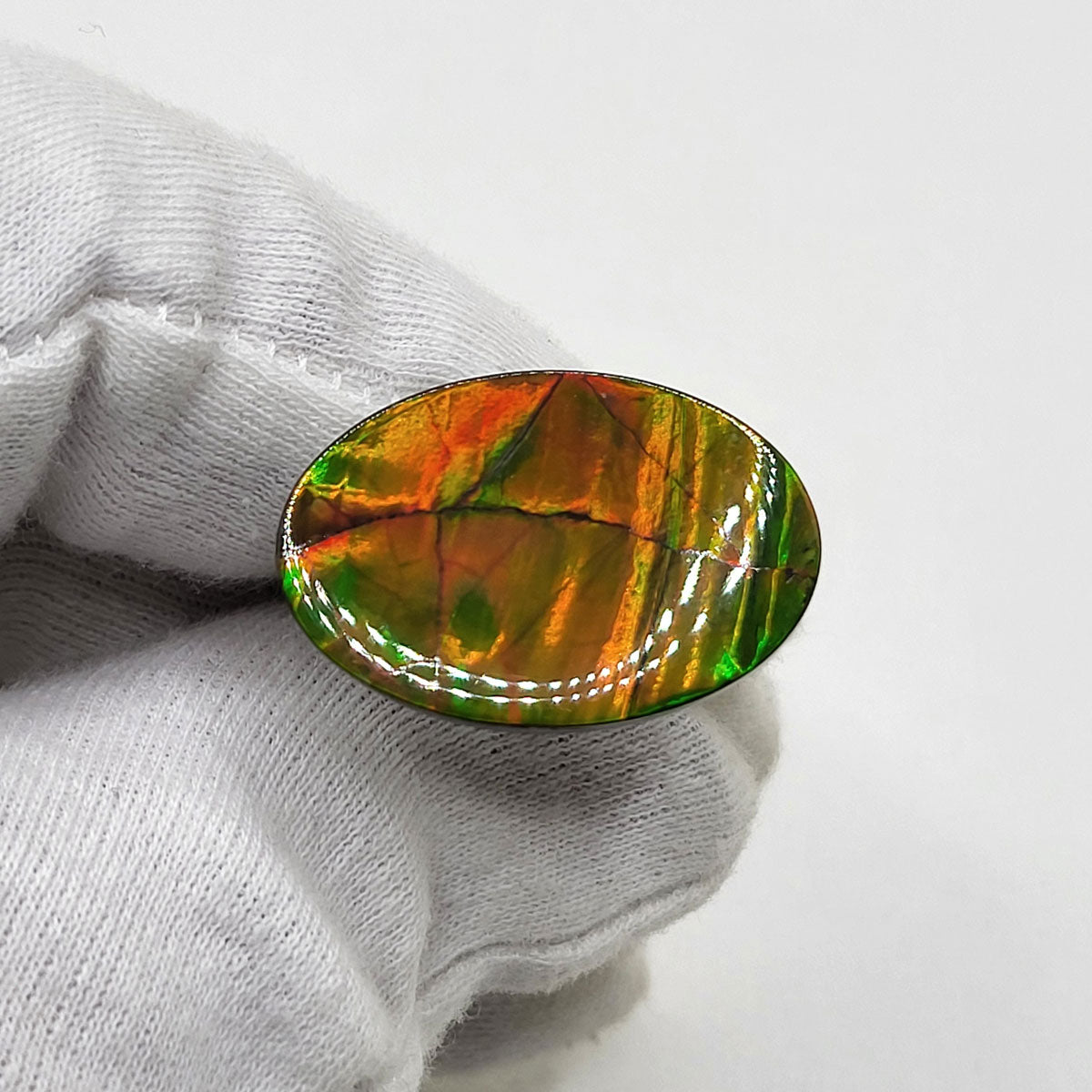 Oval shaped Authentic Alberta Ammolite Freeform Gemstone as collector piece or as designer piece for customized jewellery.