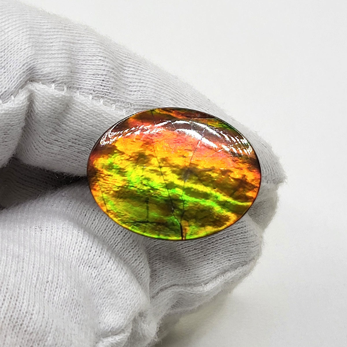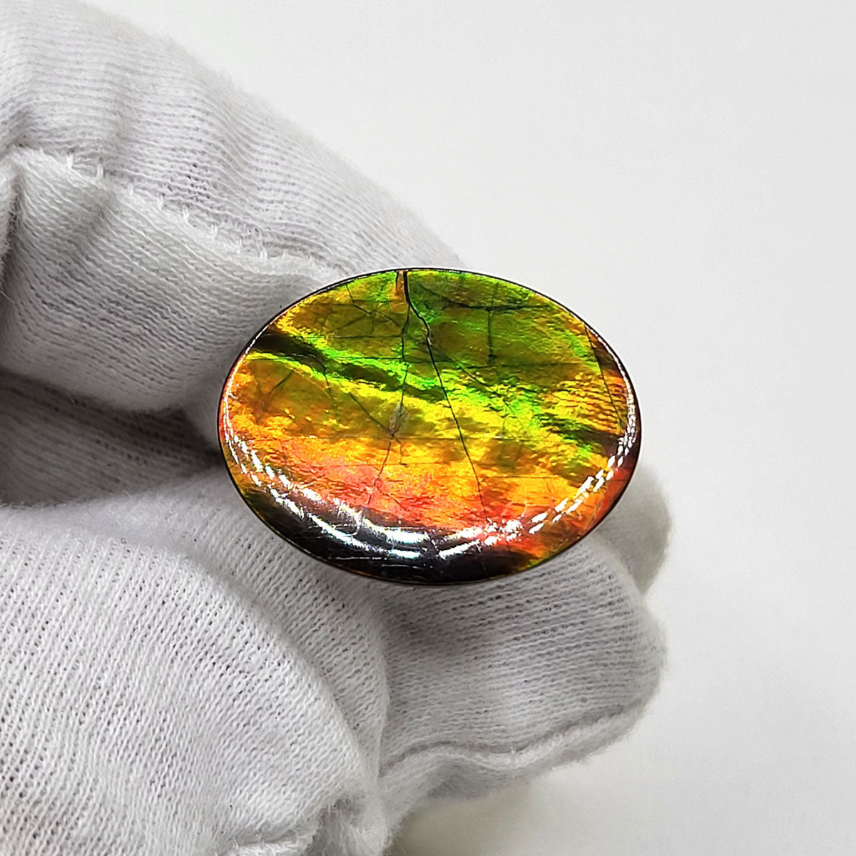 Oval shaped Authentic Alberta Ammolite Freeform Gemstone as collector piece or as designer piece for customized jewellery.