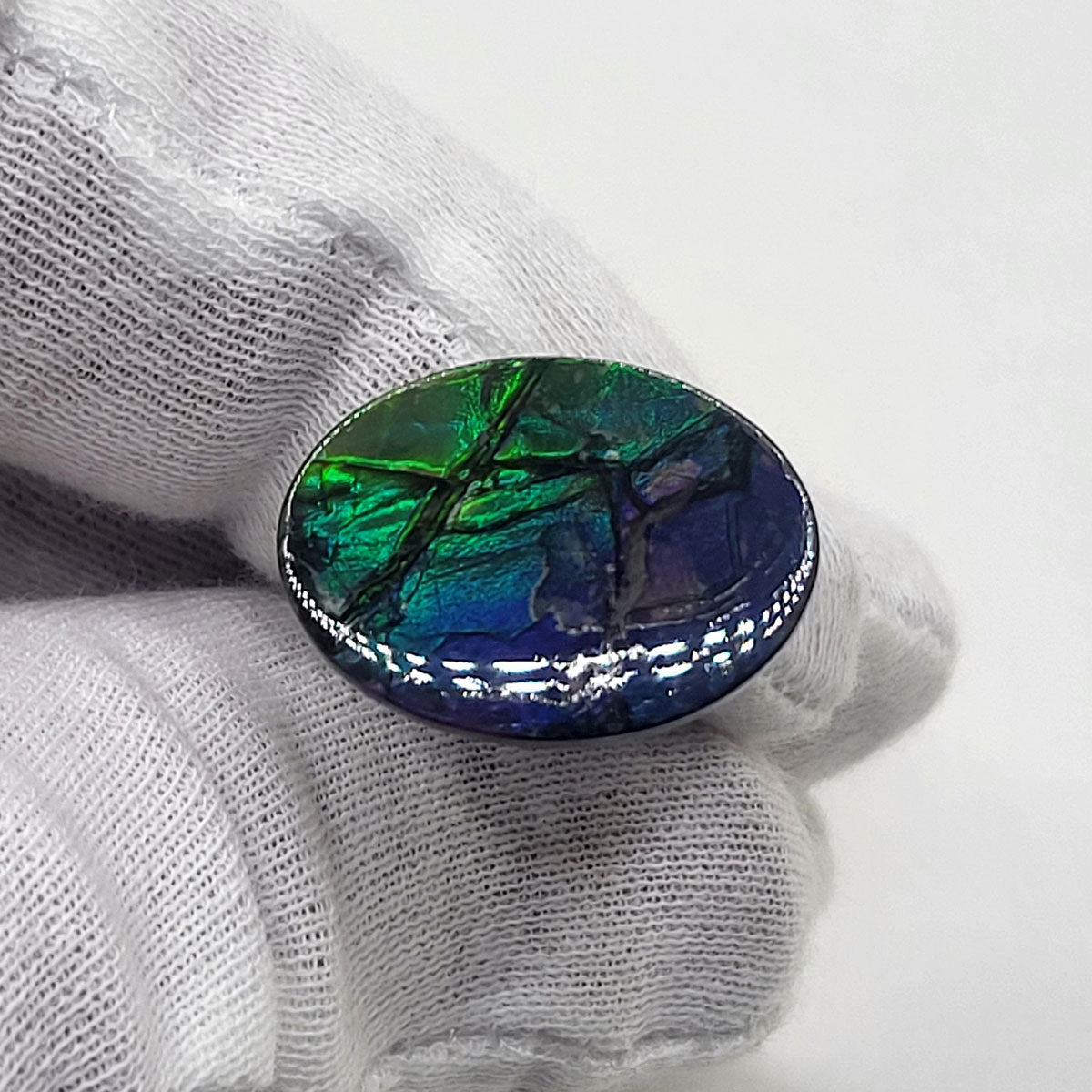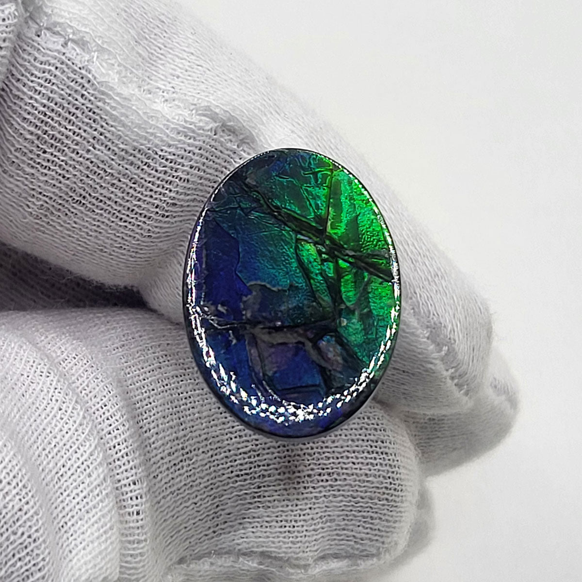 Crafted from genuine Alberta Ammolite, this Oval shaped Freeform Loose Gemstone is ideal for collectors or designers seeking to make unique, exquisite jewelry. It has been expertly hand-polished to achieve a brilliant shine using 100,000 grit diamond polish.