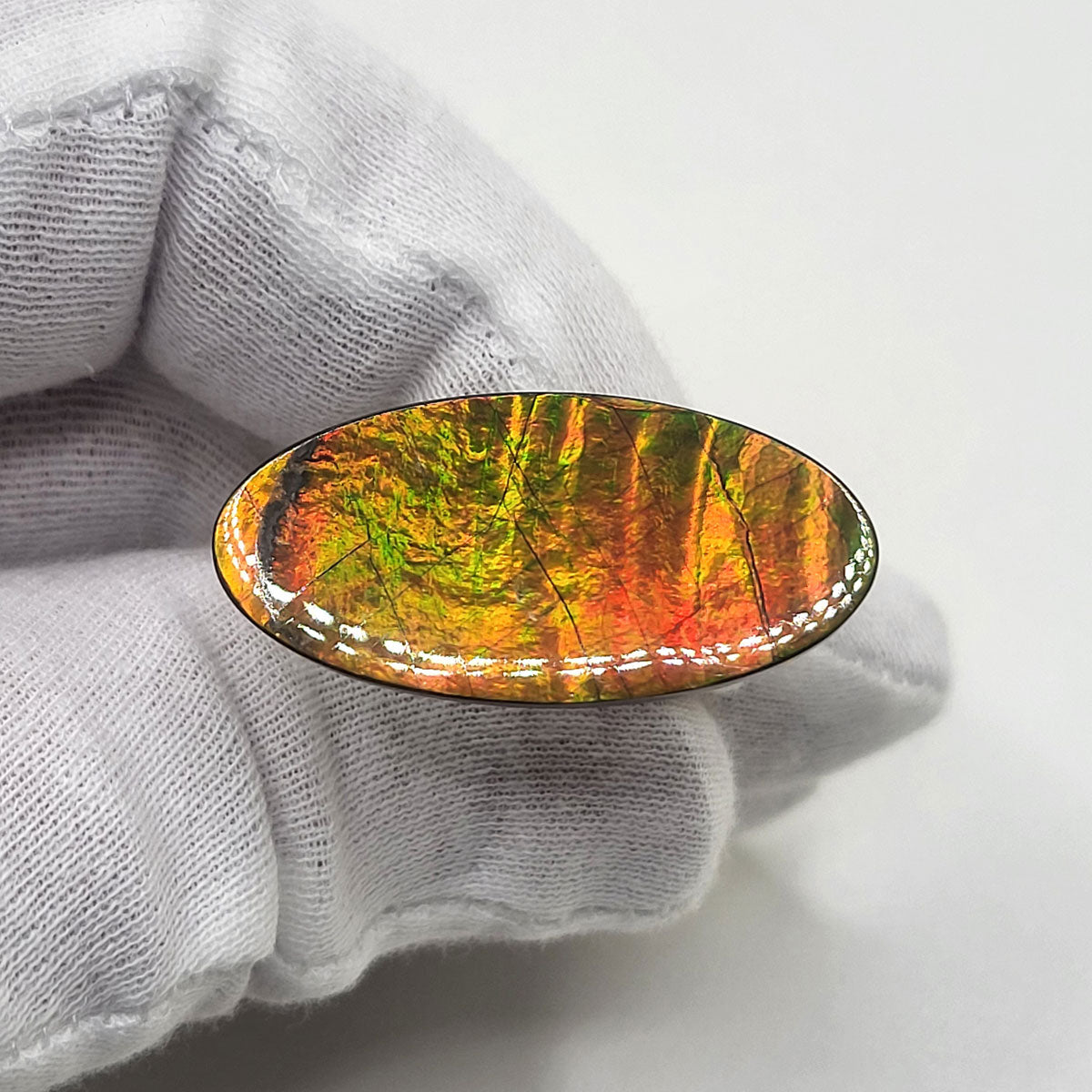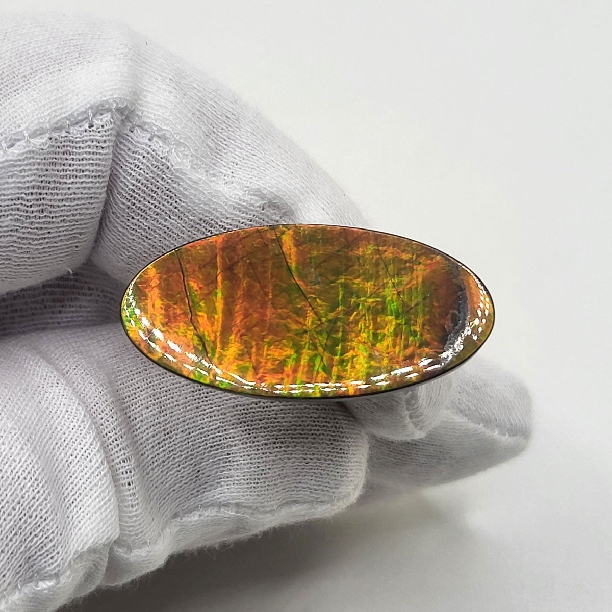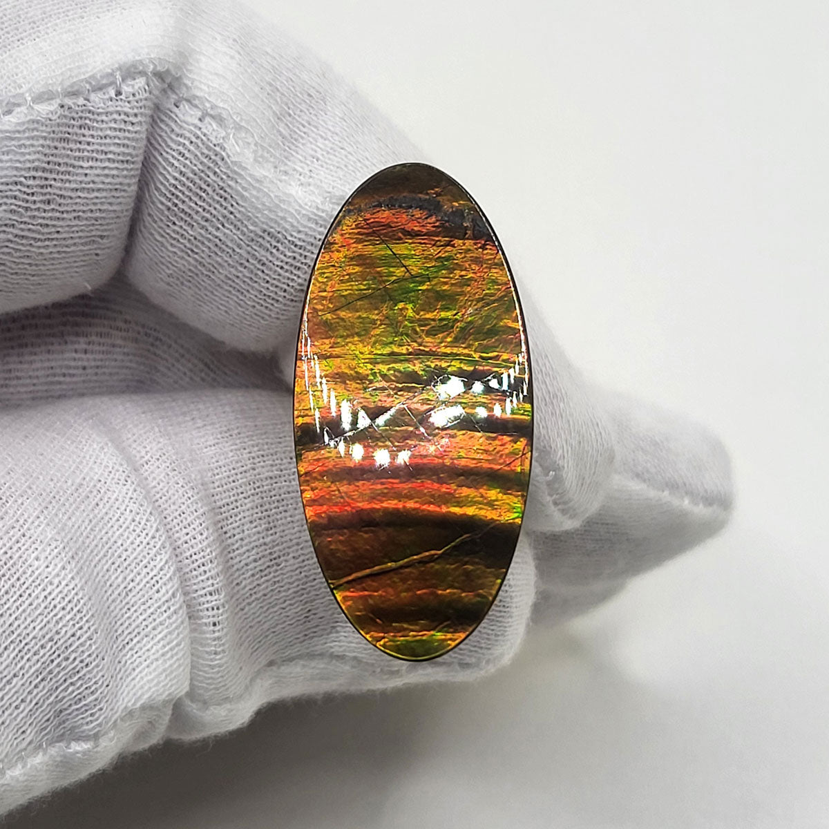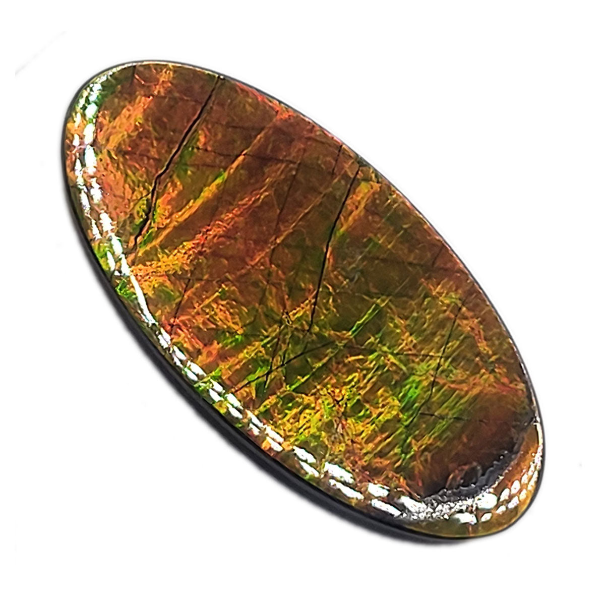 Expertly crafted from authentic Alberta Ammolite, this loose Freeform gemstone boasts an Oval shape that is ideal for collectors and designers seeking to craft exquisite, one-of-a-kind pieces of jewelry. It has undergone meticulous hand-polishing with 100,000 grit diamond for a brilliant and luxurious finish.