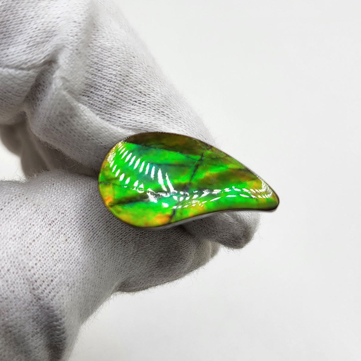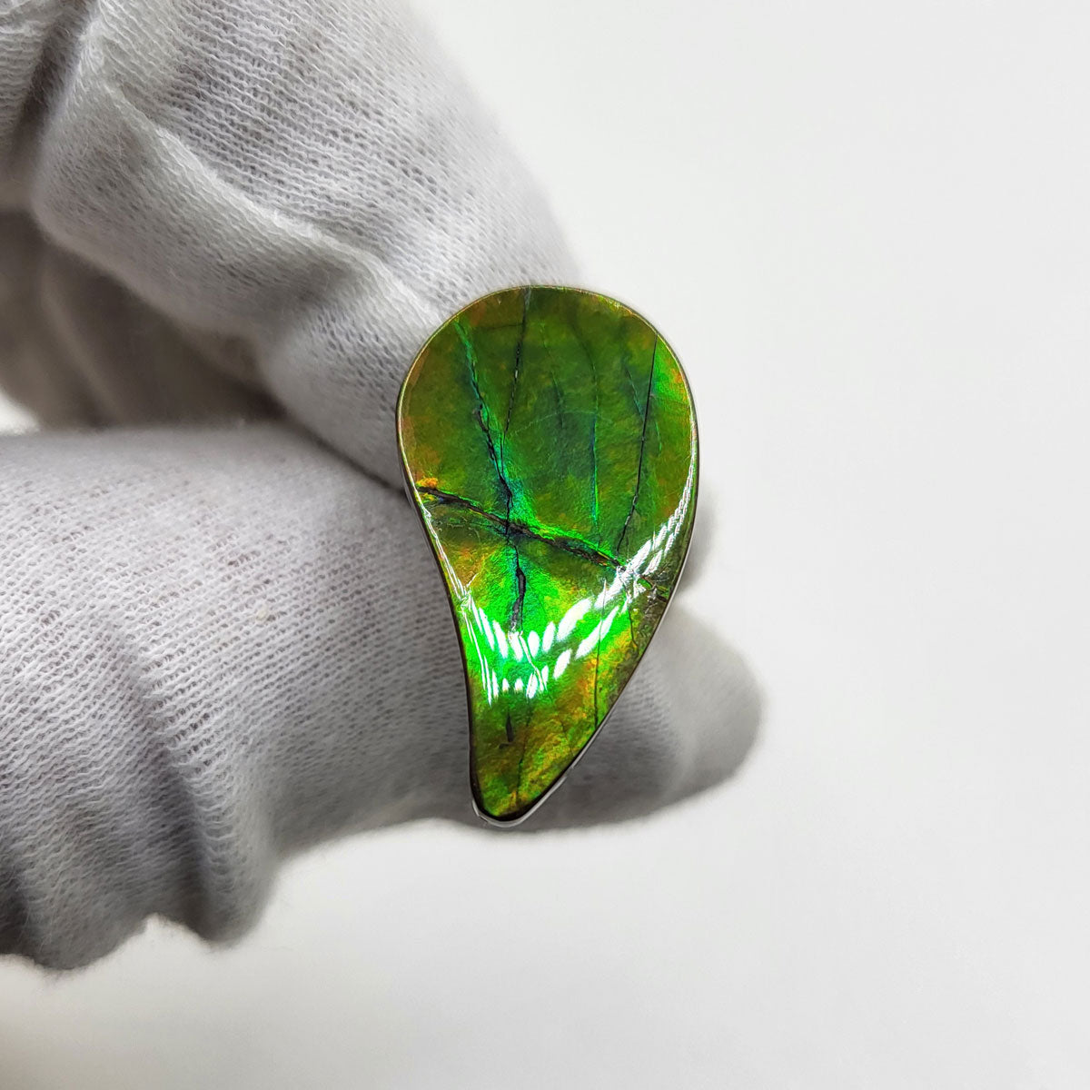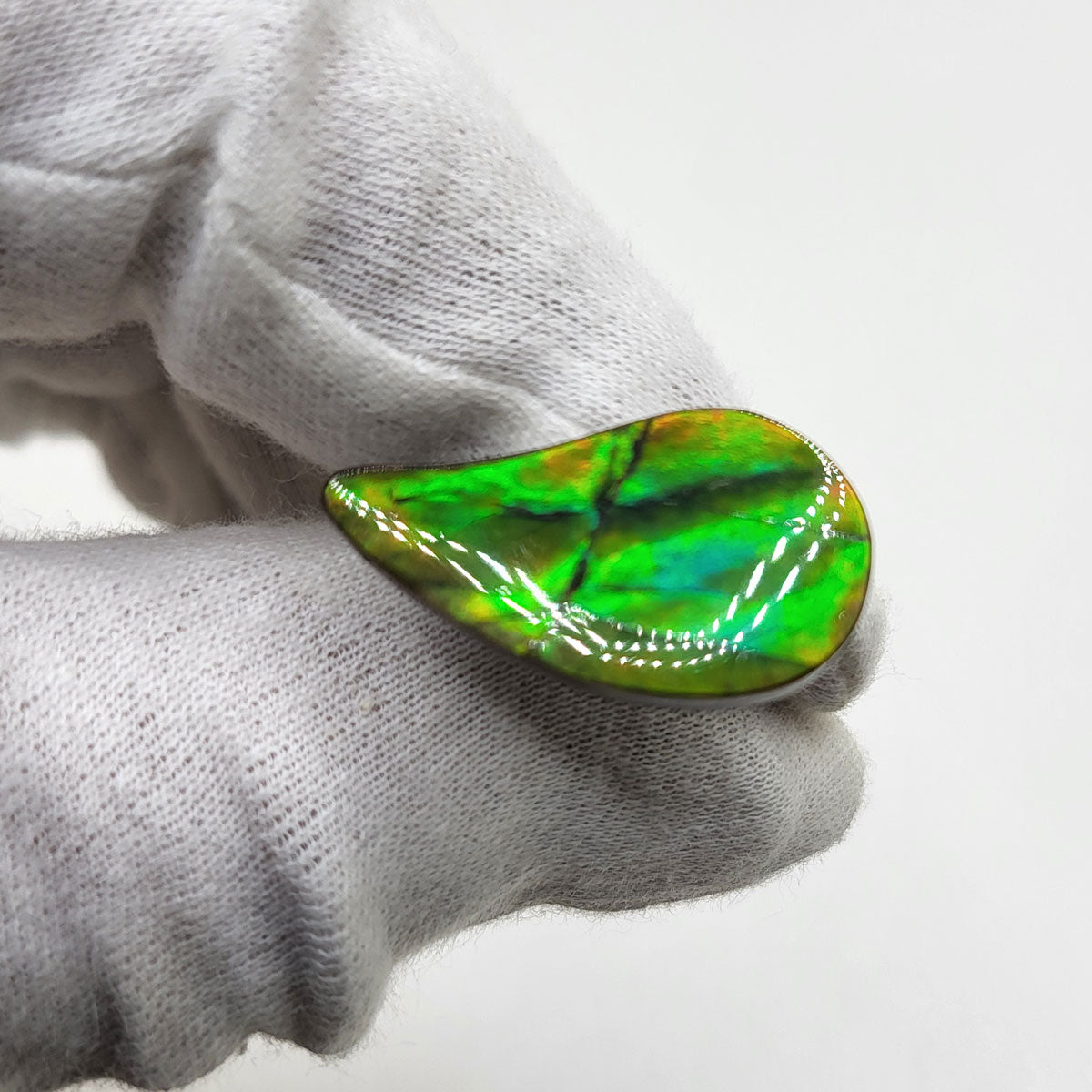 Swept Pear shaped Authentic Alberta Ammolite Freeform Gemstone as collector piece or as designer piece for customized jewellery.