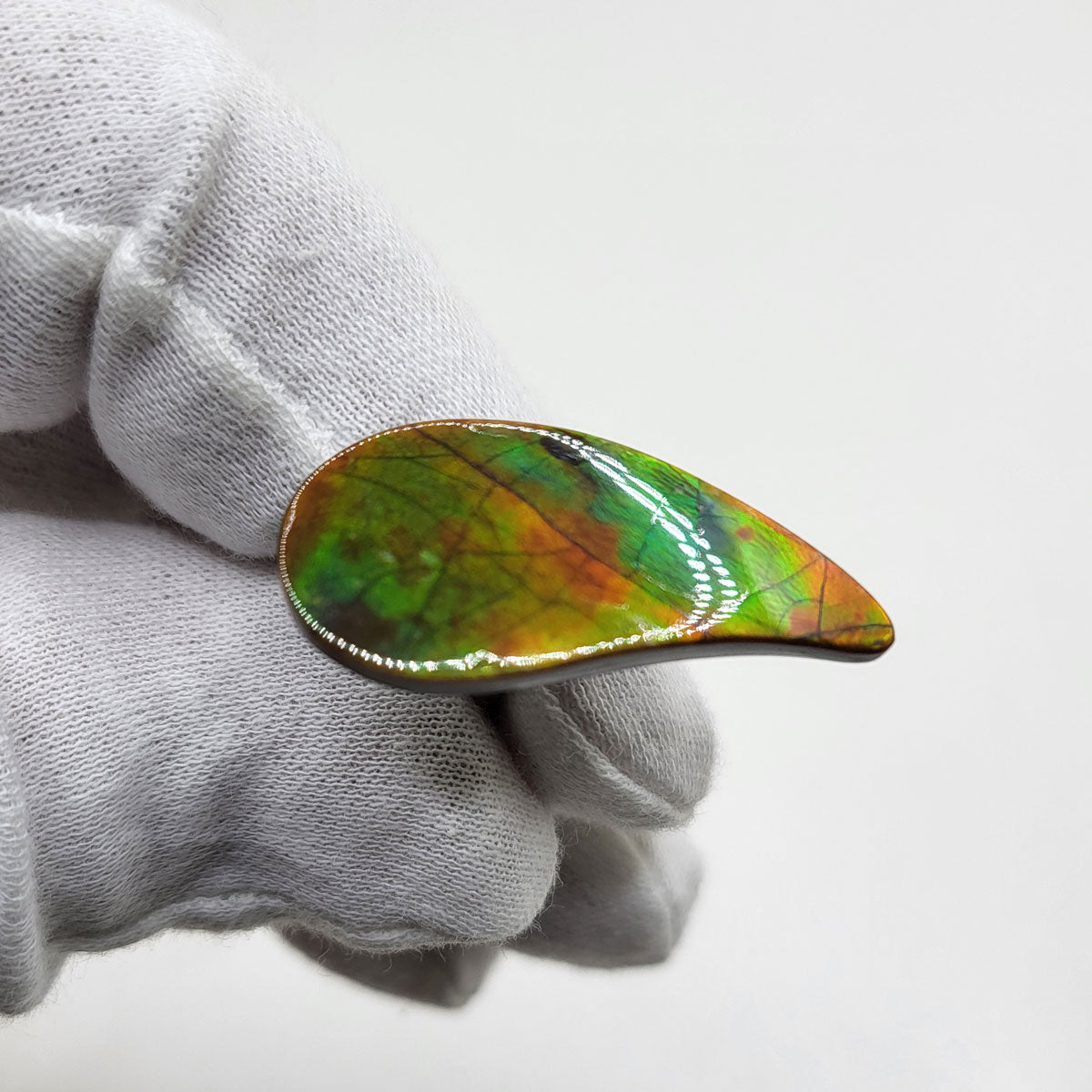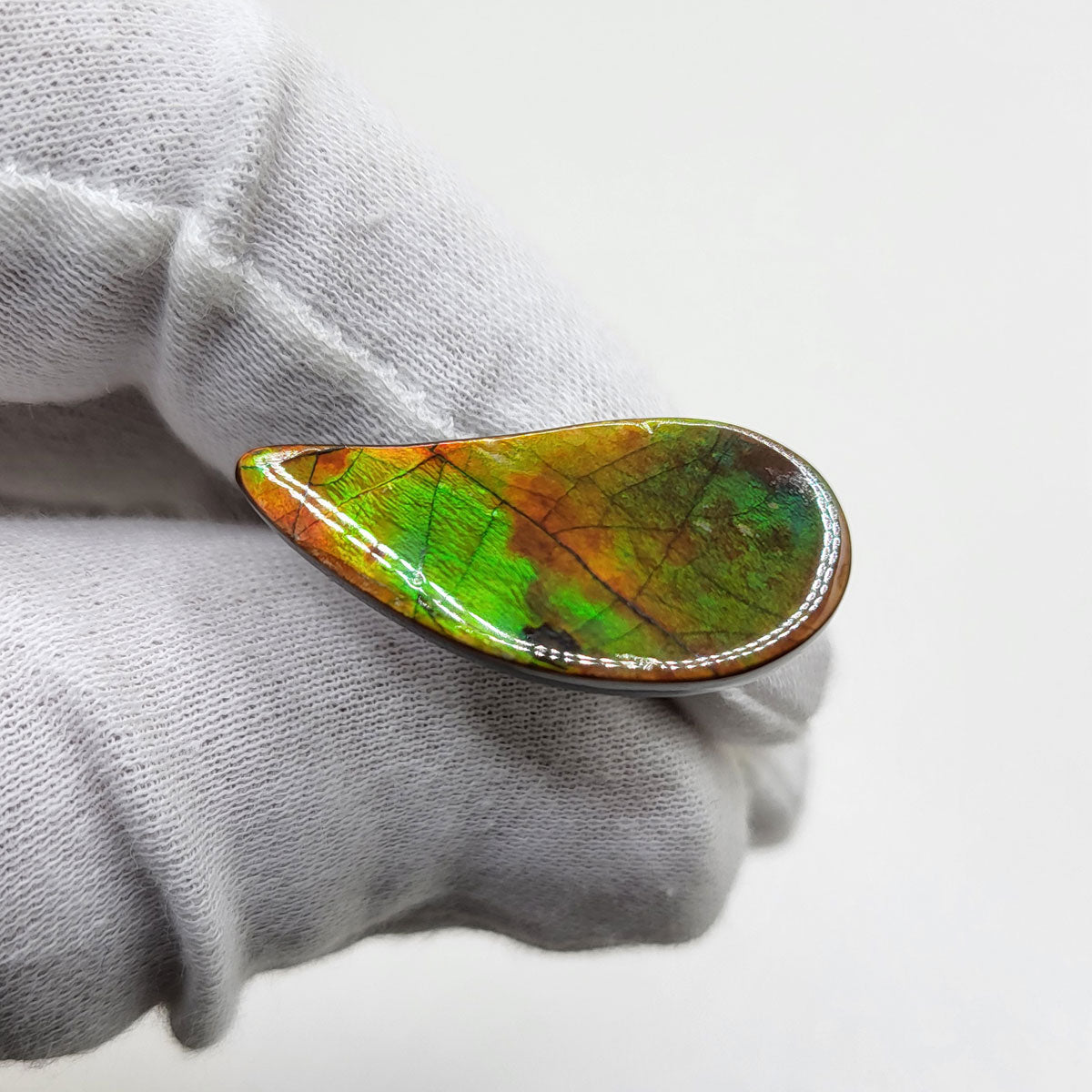 Swept Pear shaped Authentic Alberta Ammolite Freeform Gemstone as collector piece or as designer piece for customized jewellery.