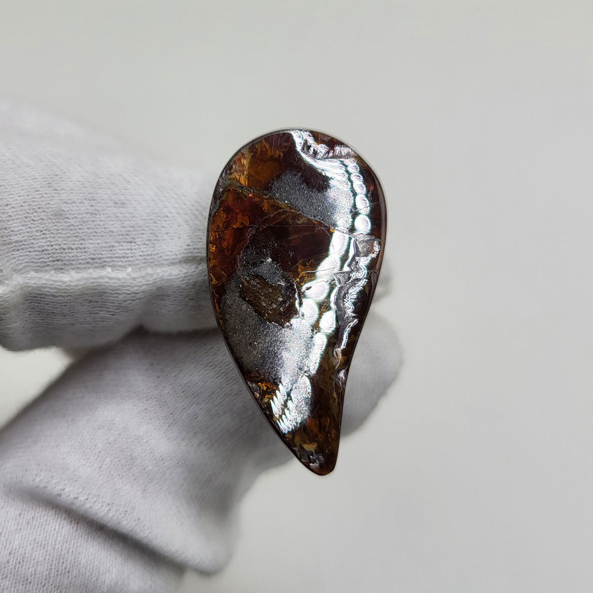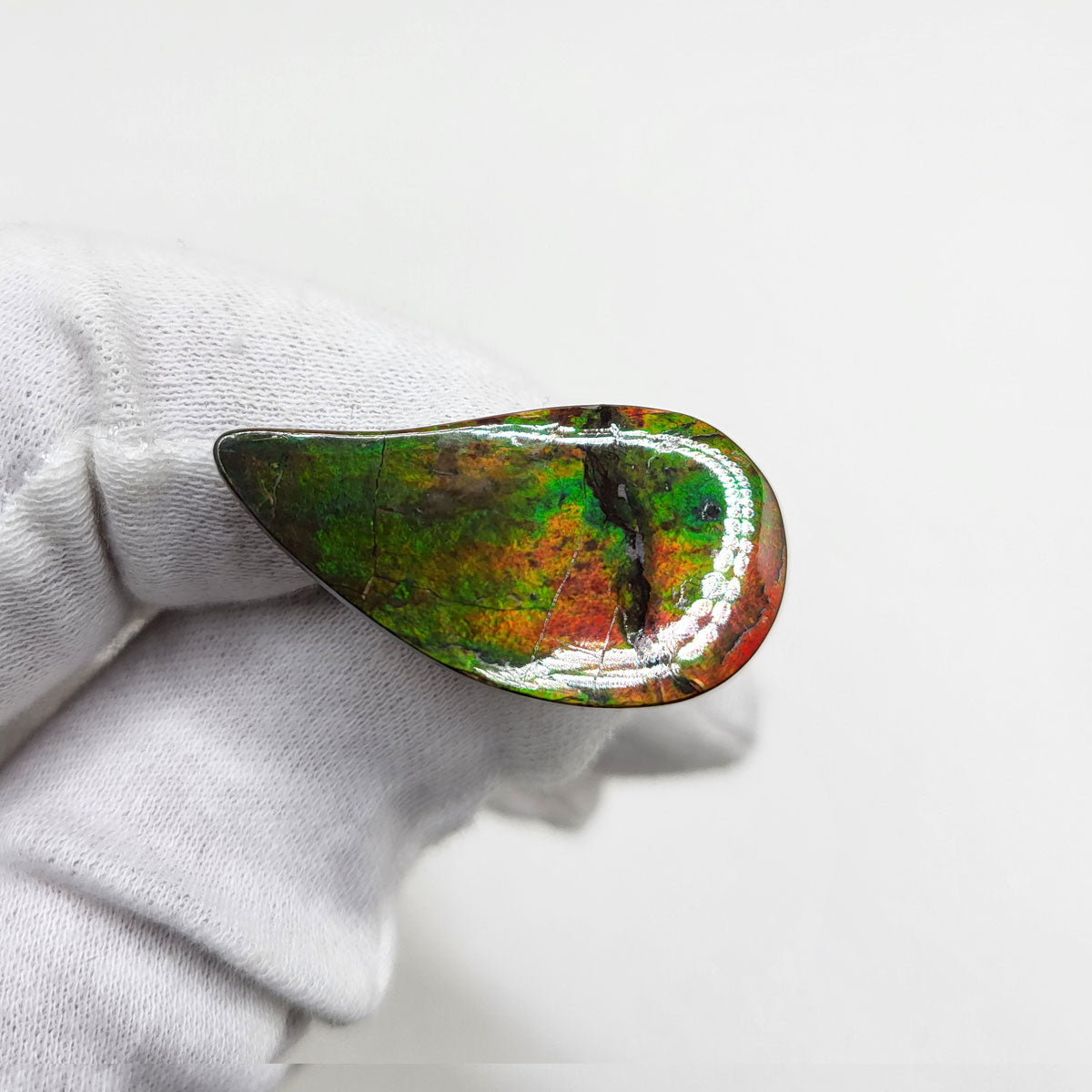 Swept Pear shaped Authentic Alberta Ammolite Freeform Gemstone as collector piece or as designer piece for customized jewellery.