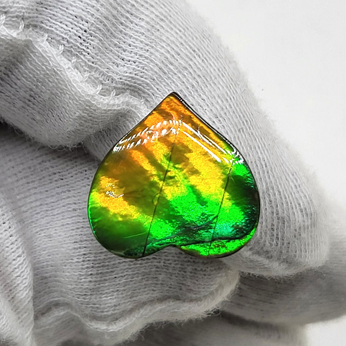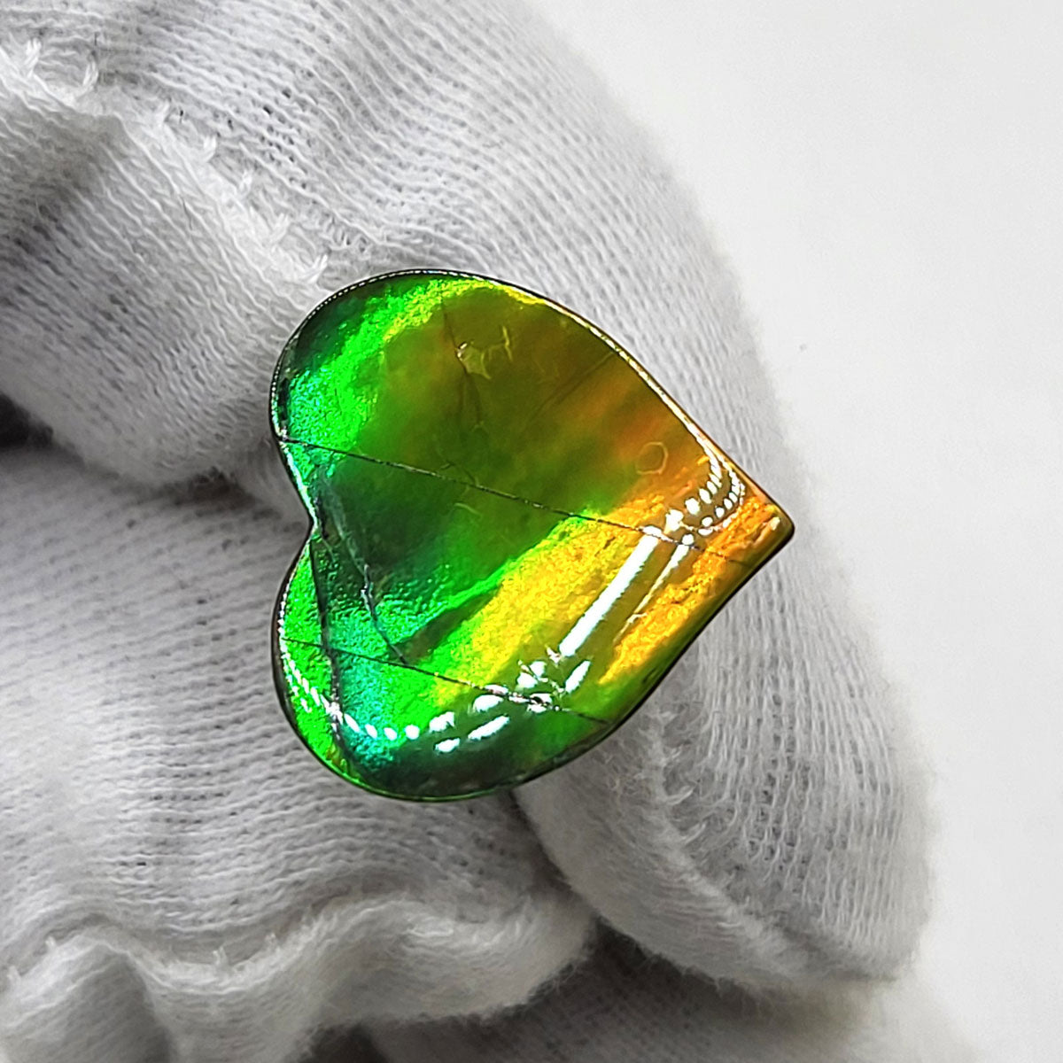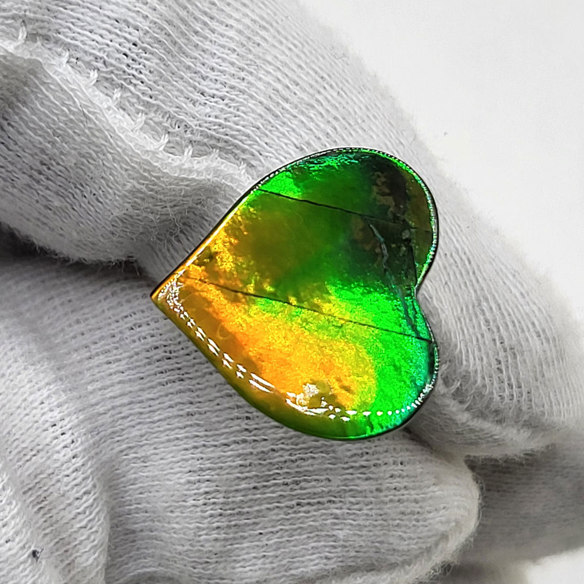 Heart shaped Authentic Alberta Ammolite Freeform Gemstone as collector piece or as designer piece for customized jewellery.
